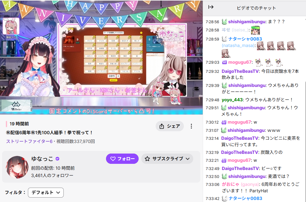そっちはgameinntwitchのアカウントでちょっとだけ一緒にチャット参加してる