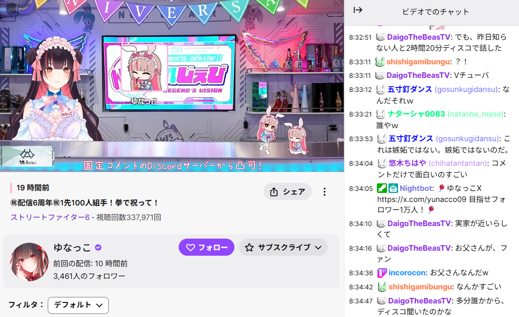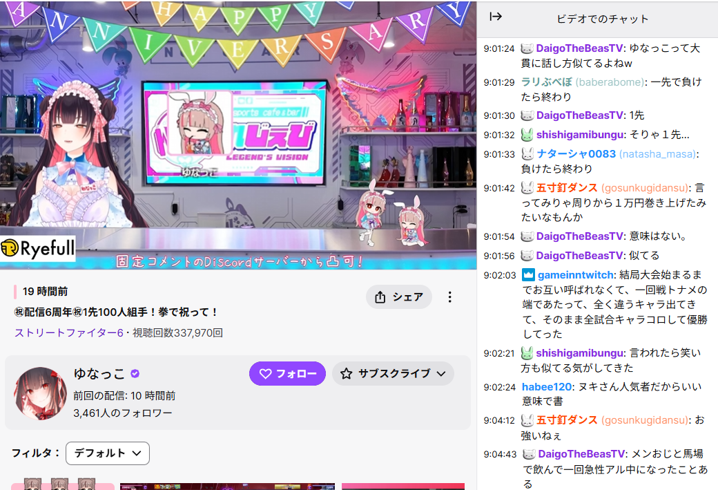 プロゲーマーのウメハラ選手と思われるDaigoTheBeasTVのアカウントが、VTuberゆなっこさんの6周年配信でコメントしていたことが一部で話題になっています。